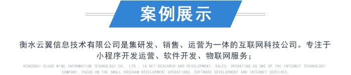 衡水云翼信息技術(shù)有限公司是集研發(fā)、銷售、運營為一體的互聯(lián)網(wǎng)科技公司。專注于小程序開發(fā)運營、軟件開發(fā)、物聯(lián)網(wǎng)服務(wù)。